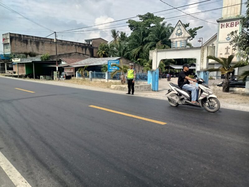 Satlantas Polres Batu Bara Perkuat Keamanan dan Kelancaran Lalu Lintas di Gereja Selama Ibadah Minggu
