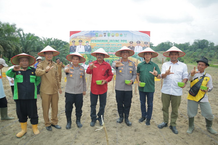 Inhu-Riau – Dalam rangka mendukung program pemerintah menuju Swasembada Pangan Nasional Tahun 2025, Polsek Lubuk Batu Jaya bersama Pemerintah Kabupaten Indragiri Hulu melaksanakan Program Nasional Penanaman Jagung Pipil Serentak Kuartal IV di lahan Tanah Kas Desa (TKD) Sungai Beras-Beras Hilir, Kecamatan Lubuk Batu Jaya, Kab. Inhu. Senin (27/10/2025).