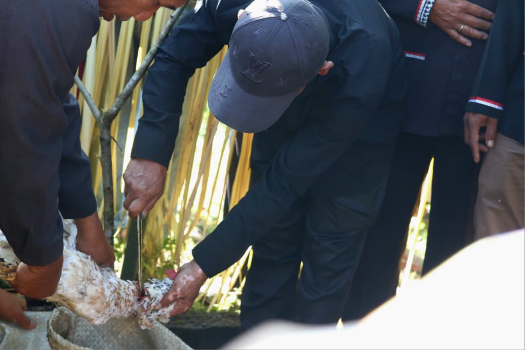 Lajim dalam upacara ini, seekor ayam disembelih kemduian dibedah dan diperiksa pada bagian-bagian tertentu oleh seorang tetua adat, sebuah petunjuk tentang jenis tanaman yang baik ditanam tahun ini, pantangan dan larangan tertentu, serta arah rezeki diyakini akan diperoleh melalui pesan yang tampak dalam proses ini. Sebuah proses, upacara, dan hubungan yang harmoni antara manusia dengan roh leluhur yang terjaga dalam kemasan budaya. Inilah Menanda Tahun bagi masyarakat Pakpak.